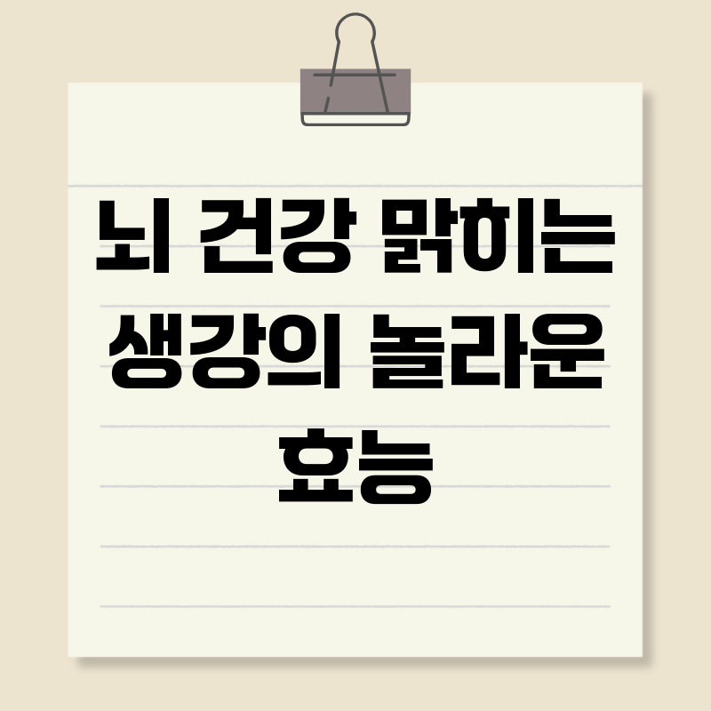 생강이 뇌 건강에 미치는 긍정적인 영향은 다양한 연구를 통해 입증되고 있습니다. 특히 주목할 만한 효능은 다음과 같습니다.