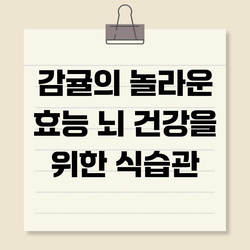 뇌 건강 지키는 감귤의 비밀: 맛과 건강을 한번에!겨울철 대표 과일인 감귤, 단순히 맛있기만 한 과일이 아니라는 사실 알고 계셨나요? 감귤에는 뇌 건강에 놀라운 효능을 가진 성분들이 가득합니다. 이번 글에서는 감귤이 어떻게 우리의 뇌를 지켜주는지, 그리고 뇌 건강을 위한 식습관은 무엇인지 자세히 알아보겠습니다.감귤, 뇌 건강에 좋은 이유: 핵심 성분 파헤치기감귤에는 다양한 비타민과 항산화 물질이 풍부하게 함유되어 있습니다. 특히 주목해야 할 성분은 다음과 같습니다.비타민 C: 강력한 항산화 작용으로 뇌세포 손상을 막고 인지 기능 저하를 예방합니다.플라보노이드 (헤스페리딘, 나린진 등): 뇌 혈류를 개선하고 뇌세포를 보호하며, 신경 퇴행성 질환 예방에 도움을 줄 수 있습니다.카로티노이드 (베타카로틴, 베타..